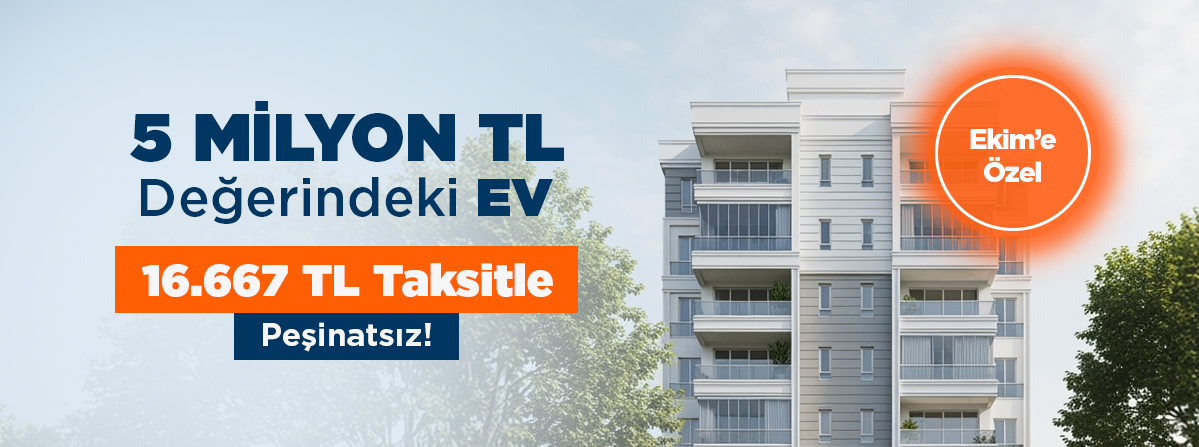5 Milyon TL’lik EVE sadece 16.667 TL taksitle hatta peşinatsız kavuşmak istiyorsanız, bu fırsatı kaçırmayın.